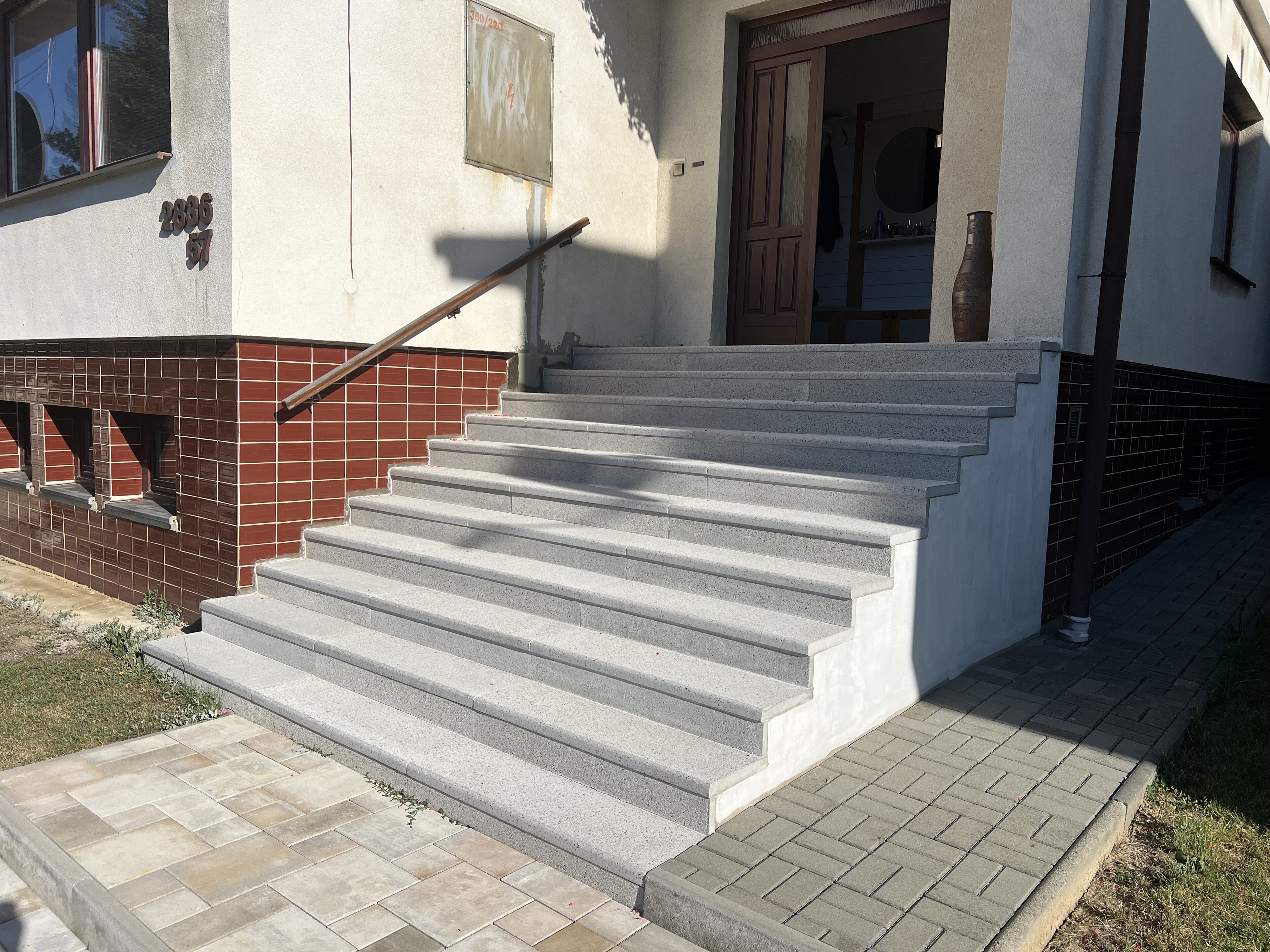 Стълбите с площадка + стъпало са класическо и вечно решение за входни стълби в семейни домове. Нашето отлично сиво покритие придава на тези стълби изключителен естетичен вид и дълготрайна издръжливост.